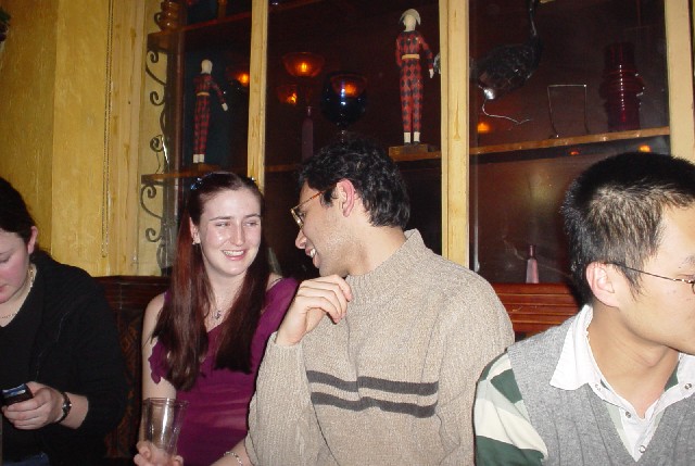 Chau laughing, sarv drunk in the corner