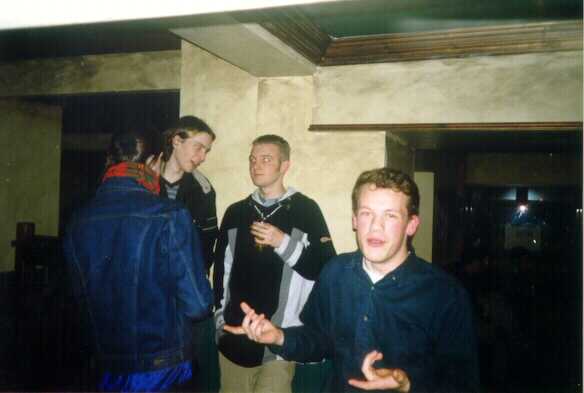 Zombie, P and Spock huddle as Chewy gives them the finger(s)
