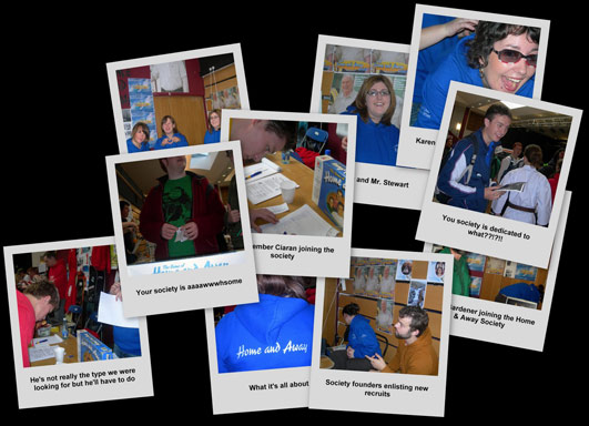 Click here or on the image below to launch a new window with a gallery of Clubs & Socs day 2006 where we recruited our first members. Click here to view a large version of this collage to view as wallpaper [1280x800].