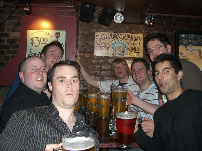 Next night out, into Off the Wagon for 'Fives' drinking game. This is the only photo of all 7 of us