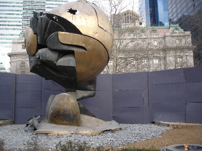 sculpture that once resided in the World Trade Center Plaza