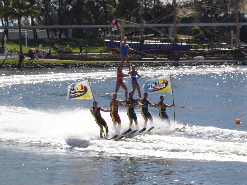 8 man skiing pyramid, apparently hard to do