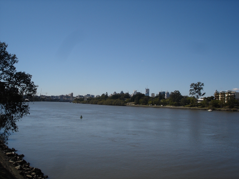 View of Brisbane from the river beside our apartment