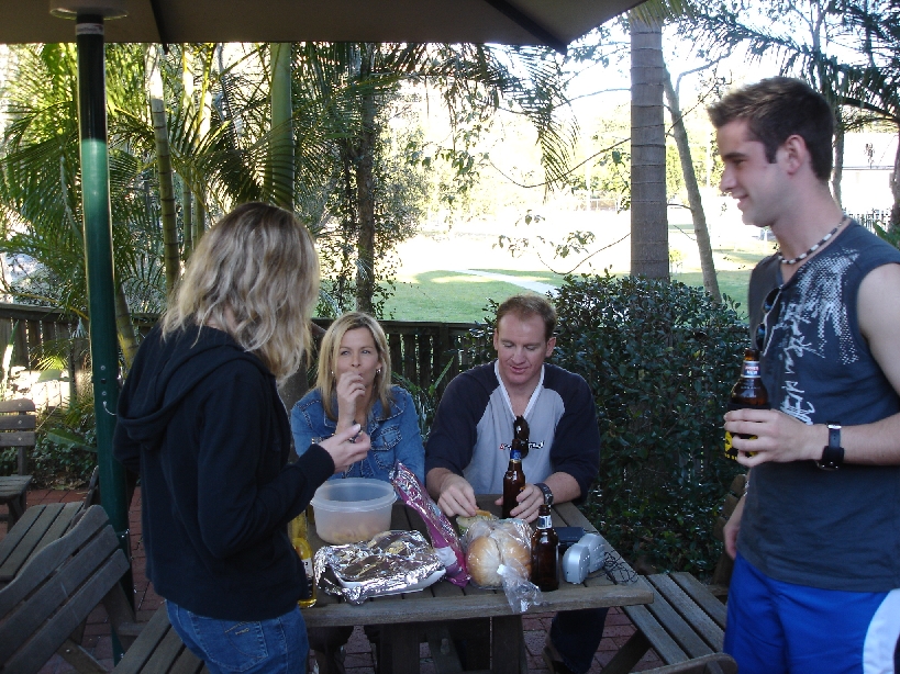 Justine and Jacko sitting down, Sandrine and Andy standing up