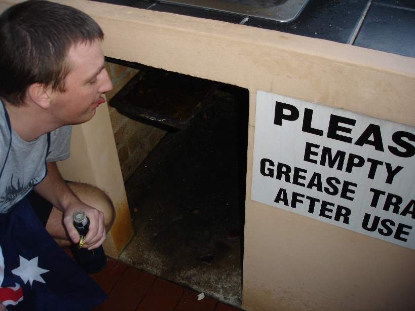 PJ attempts to clean out the grease tray - don't be fooled, this is a classy man
