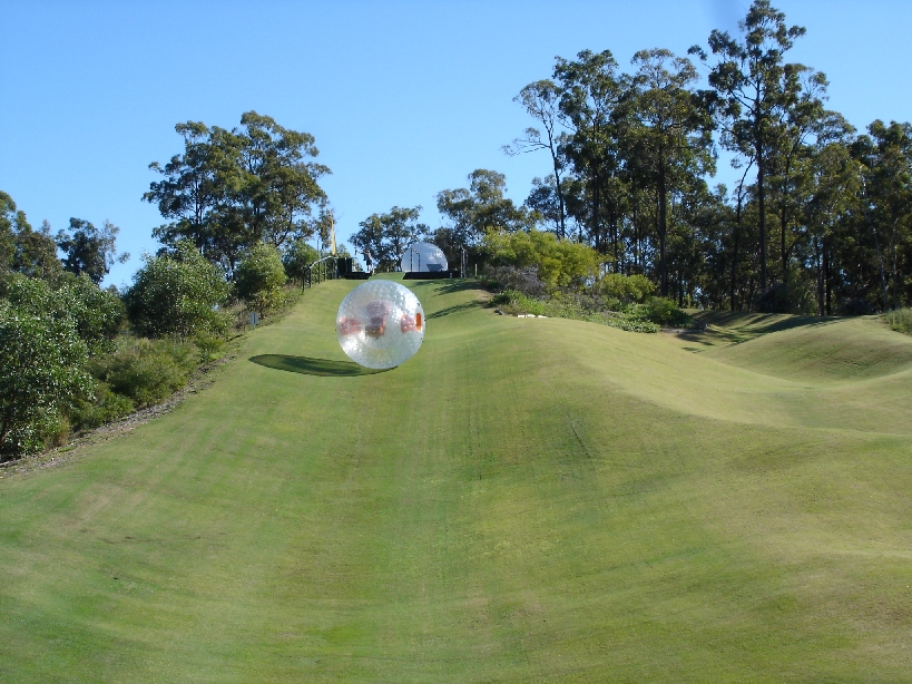 On the way to Surfers Paradise with the parents and Emma we drop in for some Zorbing!