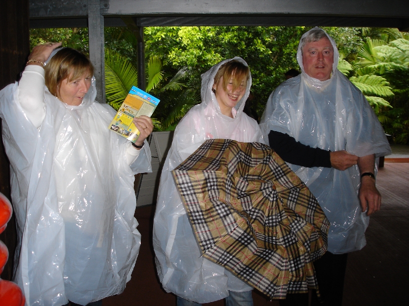 The 3 Amigos at Australia Zoo, unfortuanatly it was pissing rain, hence the silly ponchos
