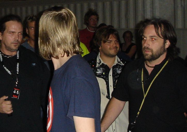 L-R: Security man staring at Anto, Anto staring at JB, Jack Black, Security man staring at Anto
