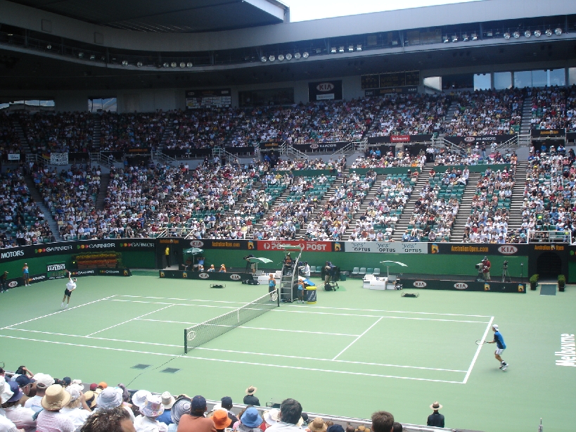 Agassi mid-serve