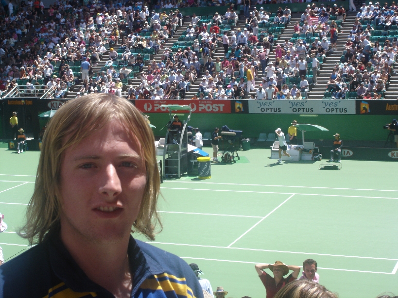 Anto with Aagassi in backround (I don't know why I look like a bunny)