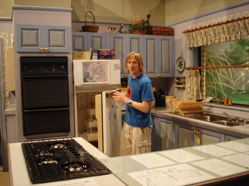 Moyles on set of 26 Ramsay St. (Melbourne Museum)