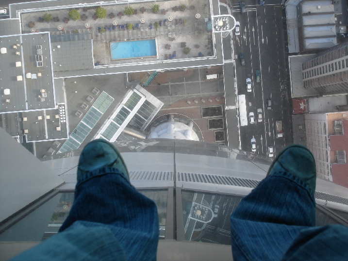 Dangling my legs over the edge from the top ;)