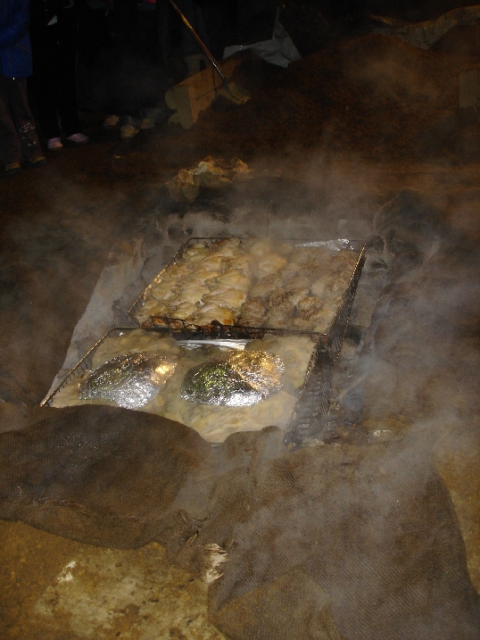 Our dinner being cooked in a Hangi at a Maori dinner and concert thing in Rotorua