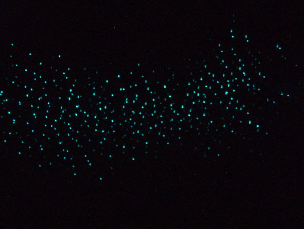 Glowworms on the cave roof (they're not actually worms but maggots, yah)