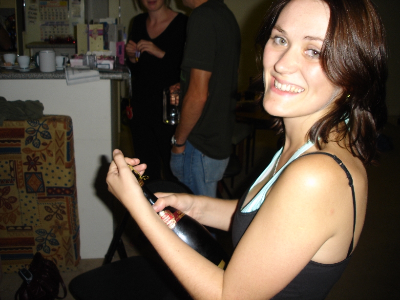 Neasa popping champagne