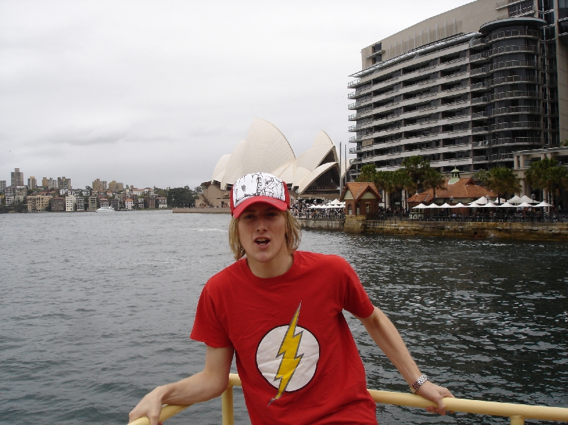 Anto on the Ferry to Tarango Zoo, Opera House in Backround