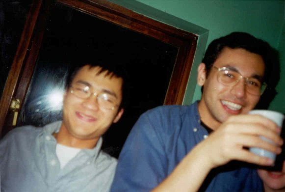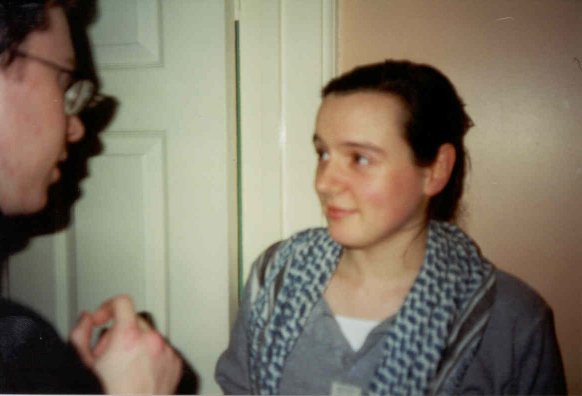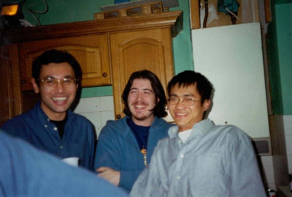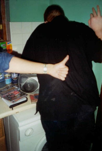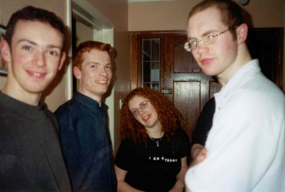 Just before Christmas 2000 there was a party in William/Anne/Barry's house (aka the house of Jam) for the reason of... er.. I forget actually. Not like you care anyway. *sniff*. ![]() Aoife (ace) gives a quick summary of the party using her face. It wasn't really this bad (or confusing). ![]() Brian (moridin) makes a two pronged conversation attack on Grainne (dimples) in co-horts with his shadow. ![]() Chau (whc) and Sarv (macbain) stand slanted-ly to confuse my expert-photo-taking abilities. ![]() John Bolger (x) and the winning smile that made him the media darling he is today. ![]() John (tibor) is momentarily distracted from his conversation while Kevin (p) mistakes the flash of my camera for a doctor's flashlight. ![]() I pull off a neat and cool photo trick which allows me to "chill" in the photo while taking it at the same time and Jonathan (melmoth) grins in awe. ![]() Sarv (macbain), Karl (mcbain) and Chau (whc) laugh at my continued ineptitude at handling slanted photos. ![]() Someone that looks mysteriously like Barry (bubble) tries to stop the cd player from playing britney while a thumb appears from nowhere and steals the limelight. ![]() Michael (magluby), Andrew (montoya), Heather (broccoli) and John (argolis) attempt to outstage each other in humerous camera-grins and all end up winning. |