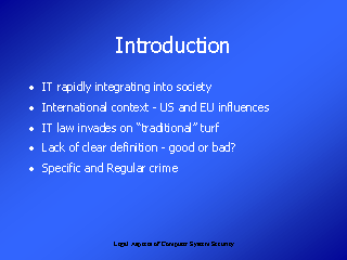 IT law treads on the toes of other more traditional areas: constitutional, criminal and civil law. It mingles with them all.