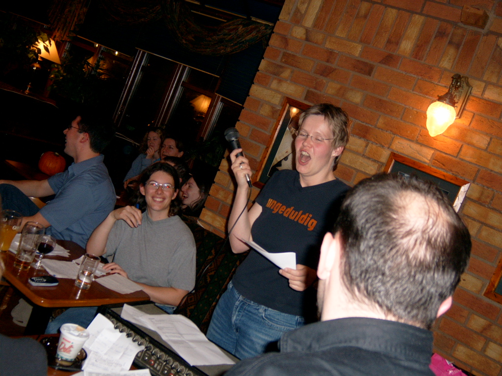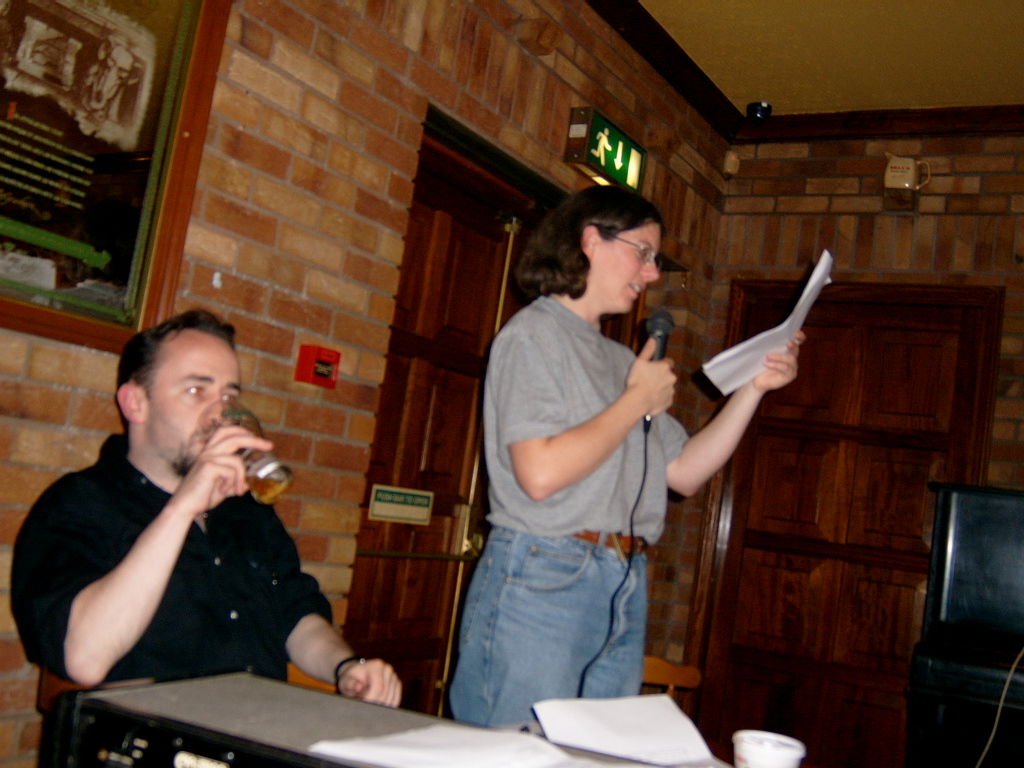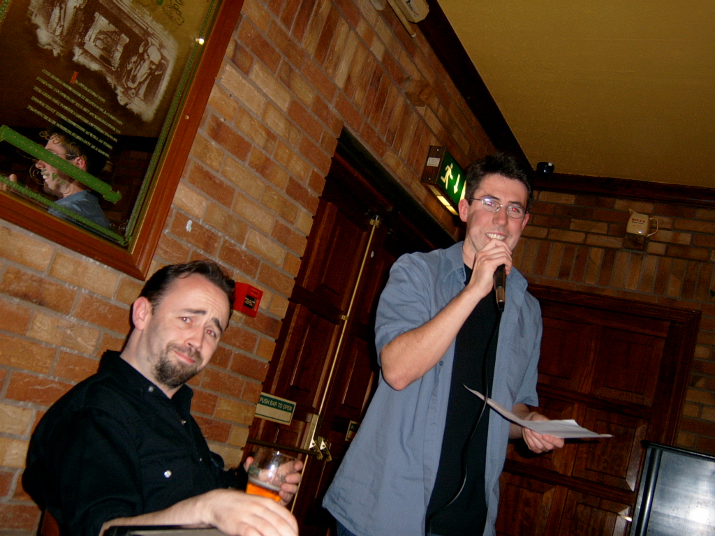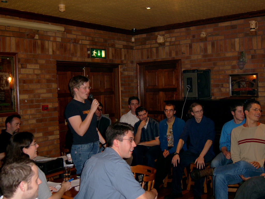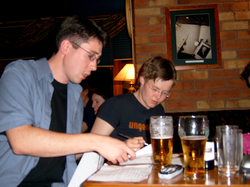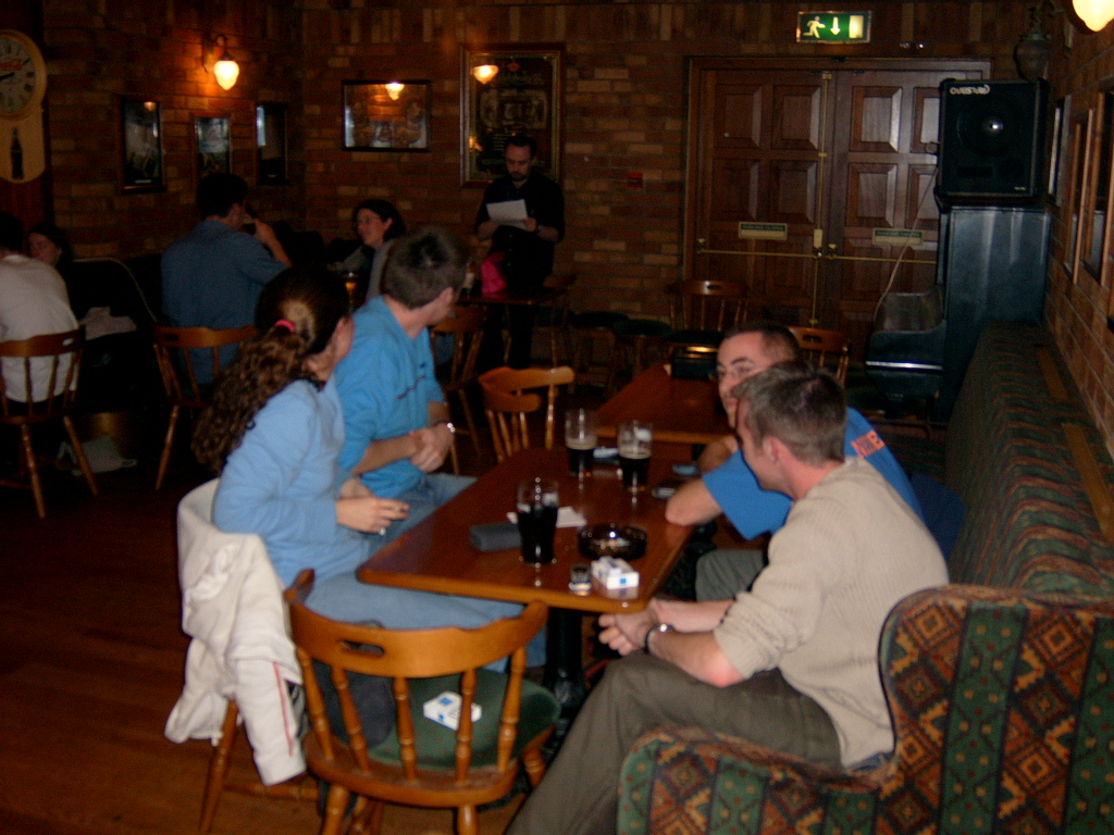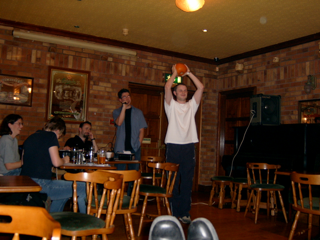Table Quiz PhotosA few choice pictures from our table quiz in the Addison Lodge on the 23rd Oct 2003 John and Karl Karl and Marion Orla and John Phil lifts the Pumpkin triumphantly! Orla and Marion The Quiz organisers minus Marion Team 1: The Freshly Squeezed Engineers Another team! Yet another team! and another team a cheery team ;) and a happy team (a bit too happy) team photo of 2nd prize winners Chosen members from each team compete for a 'mystery prize' The Winning Team! An earlier pic of the Winning Team! Dave playing piano Winners of the 'Last Place' prize! Wide-angle pic of teams Another wide-angle pic of teams Apologies for not putting in the correct team names. This will be done soon; when I get the team-name-list! |