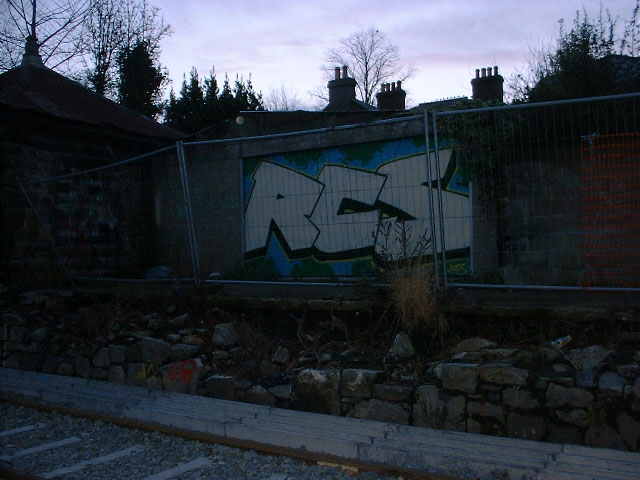 RCS?...Revision Control System, who knows? Quite a striking piece of work though, I like that 'fat' style. Commuters taking the luas along here in a few months time will have a nice view of all these wannabe basquiats artwork ;)