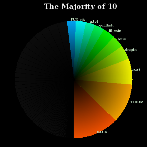 | 106 | |                                                 | | | | | uncyclopedia, comrade, tournament, que | | complain, sup, pokemon, fell, blame, yo, meh, world | | yourself, ha |