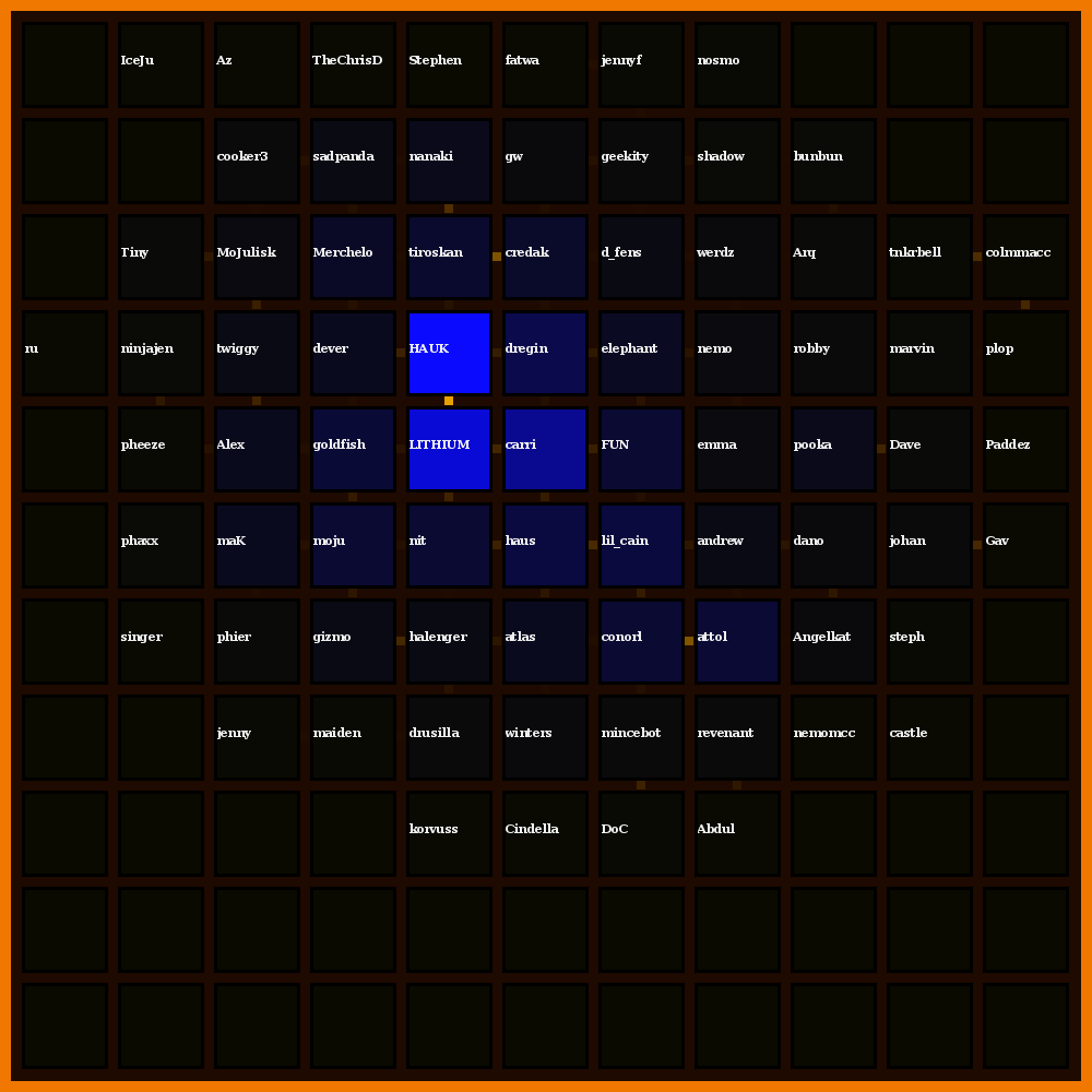 | 43 | |                                                 | | | | | waaaah, spaholes, manage, habeeb, rank | | markallen, assignments, wrench, schmooze, hulk | | kickass, arnie, mug, compress, commands, dig | | kevin, rod, docsult, dethklok |