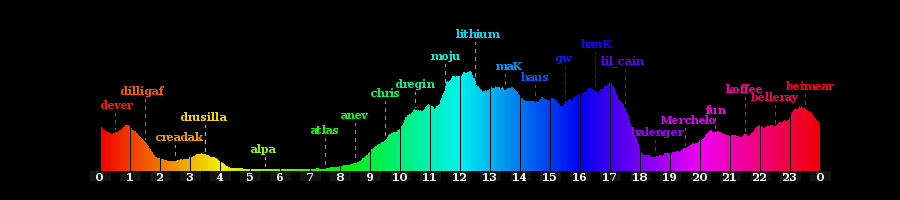 | 40 | |                                                 | | | | | bucks, war, don, prone, yonks, iownya | | draper, what'd, lubing, blooded, uniform | | waldorf, fifteen, oakwook, de_dust2, nicknamed | | operators, sweatshop, marenghi's, oh-so-cool |