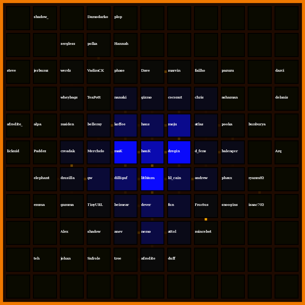 | 38 | |                                                 | | | | | birthday, isaac's, ends, xd, downtime | | regs, agms, lowly, jimmy, worms, cuold, paddawg | | warzone, gallery, pledges, villager, sickener | | byedever, crucible, plotting |