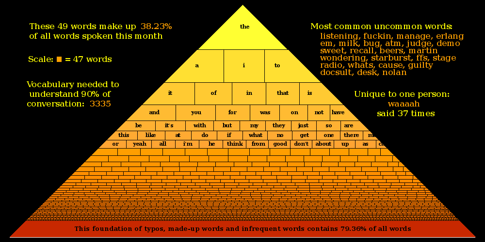 | 14 | |                                                 | | | | | tequila, feckin, dundalk, mornin, sup | | donegal, according, mass, isup, awesome, sunday | | rain, afaik, second, iirc, told, hello, society | | window, outside |
