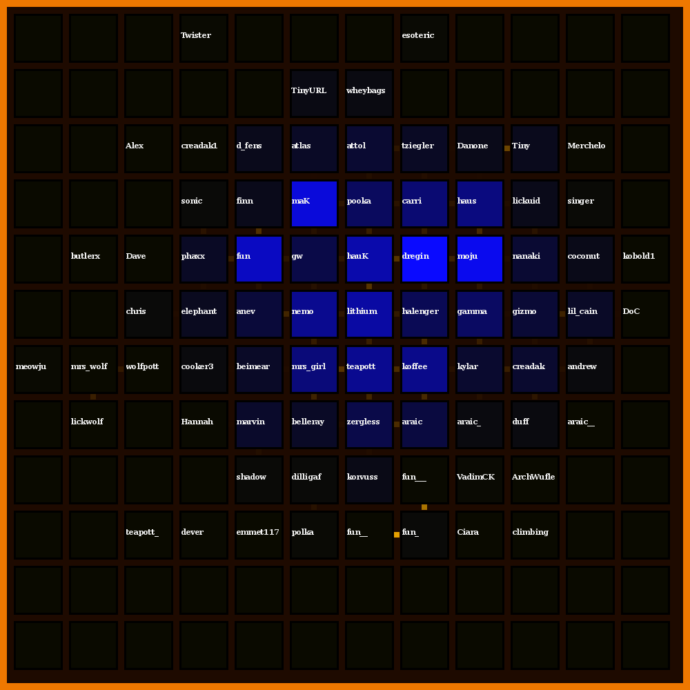 | 13 | |                                                 | | | | | wednesday, hm, fyp, taxsaver, fourth | | sandwich, tea, raining, academy, literally, la | | shush, linear, algebra, boojum, module, funny | | crypto, lunch, donate |
