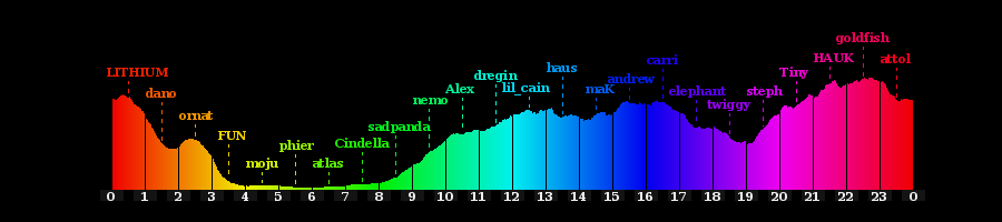| 91 | |                                                 | | | | | snowing, joined, irssi, saturday | | limerick, evening |