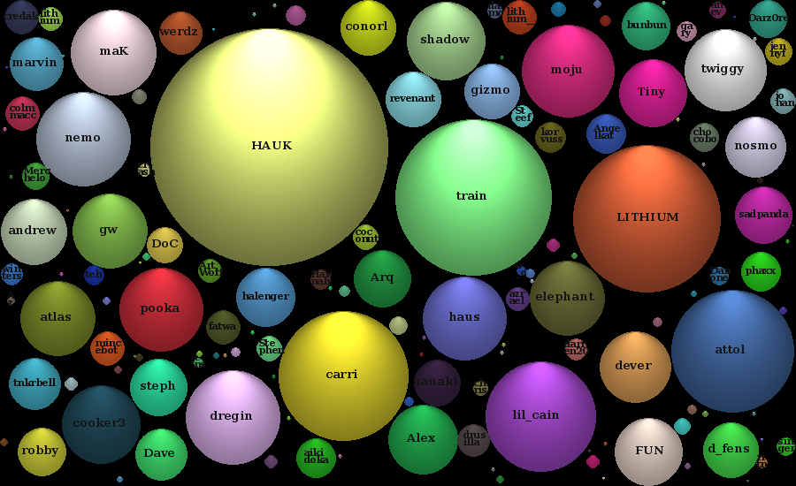 | 94 | |                                                 | | | | | kidin, zshrc, fokin, tucked, jayzuss | | gossip, weechat-curses, config, scripts, storm | | bin, wha, winter, smell, ohai, indeed |