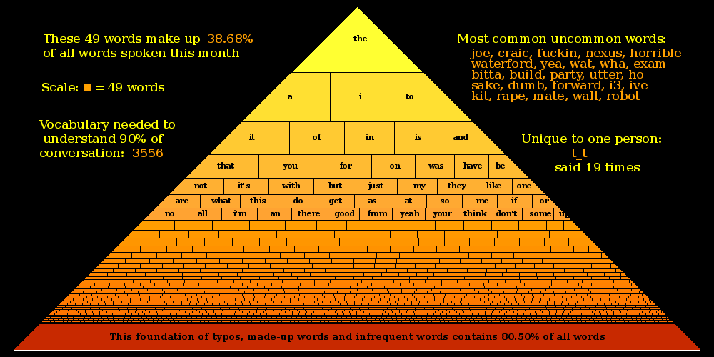 | 19 | |                                                 | | | | | yeh, alot, ive, html, dmesg, firewall | | thats, theres, cant, dont, wp-install, sd, irssi | | community, wordpress, dns, sites, blog, weechat | | mentioned |