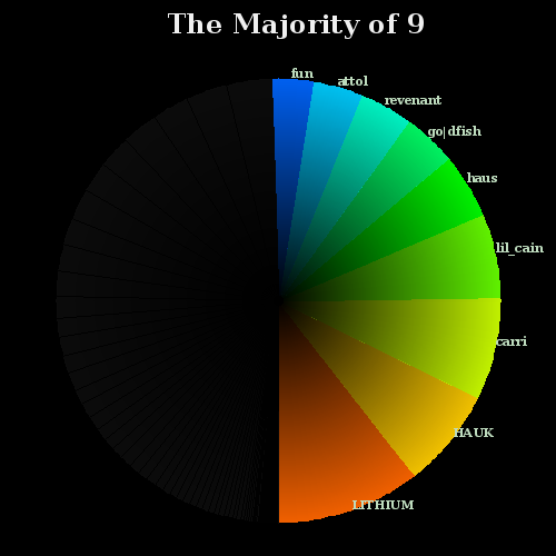 | 9 | |                                                 | | | | | hood, sonata, debian, r2, engineering | | poke, doors, intersocs, cpu, sigma, binary, os | | jazz, metal, insure, power, bitches, hub, door | | moar |