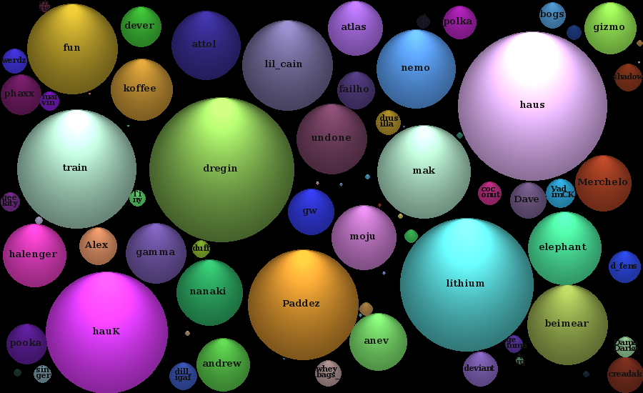 | 5 | |                                                 | | | | | lel, korean, haw, respond, mmm, context | | youtube, chillis, sarcasm, encryption, admins | | kevinly, thread, hello, aka, pity, eoghan, wut | | posts, complaining |