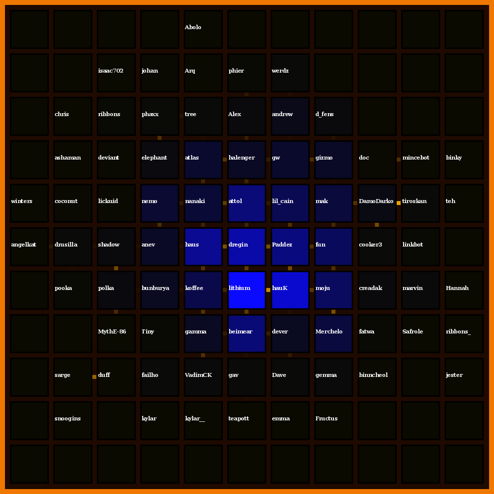 | 29 | |                                                 | | | | | chmod, zshrc, murphy, optrain | | details, announce, committee, carbon, screen | | hoodie, friday, send, indeed, storm, screenrc | | fringe, duck, irssi, bye, cookies |