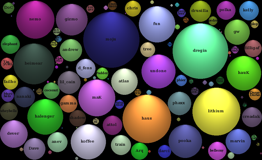 | 77 | |                                                 | | | | | nickserv, o_o, lack, watches, fault | | likely, password, came, asked |