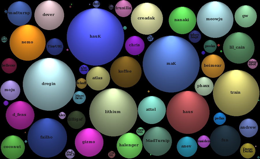 | 5 | |                                                 | | | | | lawl, bans, barman, eoghan, fired, wut | | hello, usa, plz, url, dole, guess, lo, compilers | | general, rly, youtube, cian, okay, dcc |