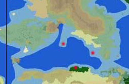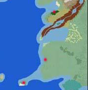 En Town 1 - Waldemarr 900 GydaFrom looking at the map, I'd prefer this town to located on the coast of that large forest on the main continent. If that was not possible either of the two islands marked would be good. Bascially anywhere in that area where a Gyda town could exist happily.