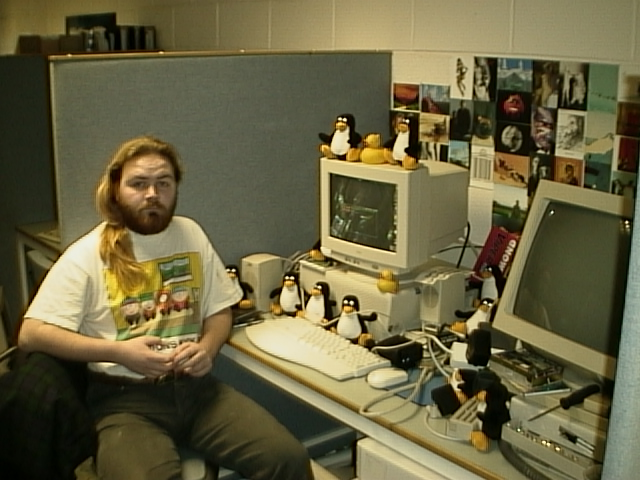 Me, by my machine when I was in college (the hair